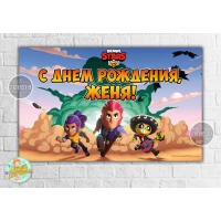 Плакат “Бравл Старс - взрыв в пустыне“ 120х75 см на детский День рождения - Индивидуальная надпись