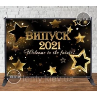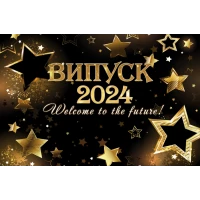 Баннер на выпускной 3х2м “Випуск 2024.Welcome to the future! Черный фон, золотые звезды“