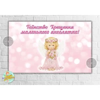 Плакат “Таинство Крещения маленького ангелочка“ розовый фон и ангел 120х75 см - Украинский