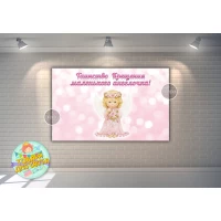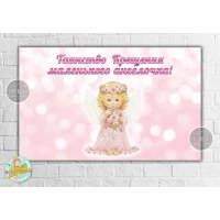 Плакат тематический для Кенди-бара 120х75 см праздник крещения “Таинство Крещения маленького ангелочка“ розовый. Аксессуары для детского праздника.