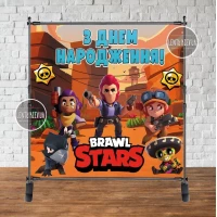 Баннер 2х2м “Бравл Старс“ оранжевый - Фотозона (виниловый) - Украинский