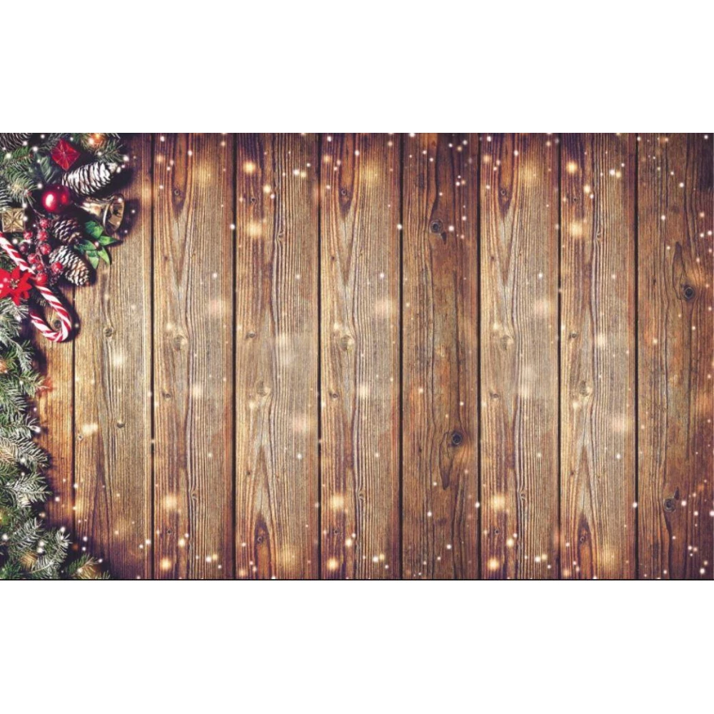 Фото-фон новогодний 120×75 см “Коричневая доска, ель, блики“, фон для предметной съемки ПВХ (баннерная ткань)