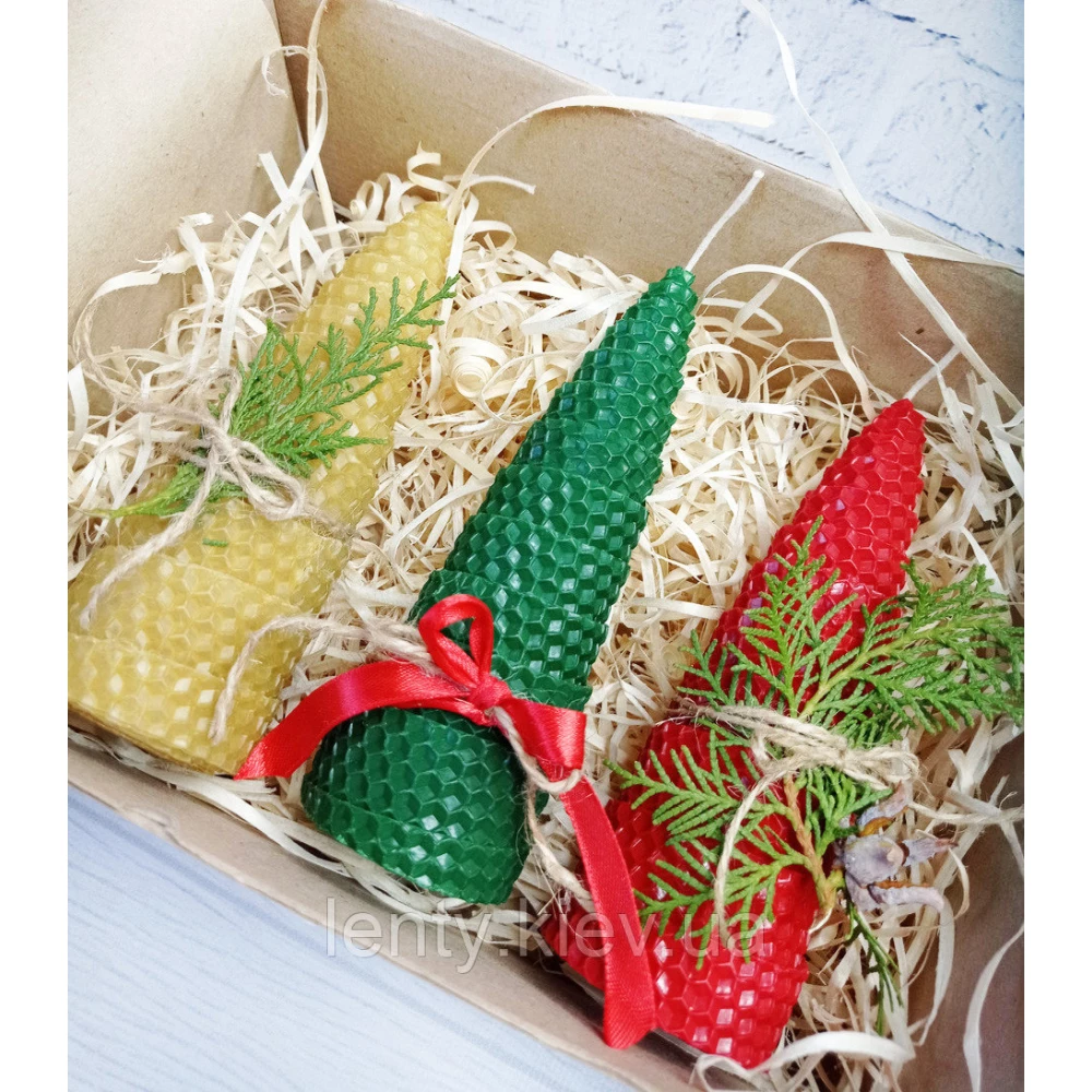 Набор из свечей (натуральная вощина, ручная работа) 3 шт на Новый год