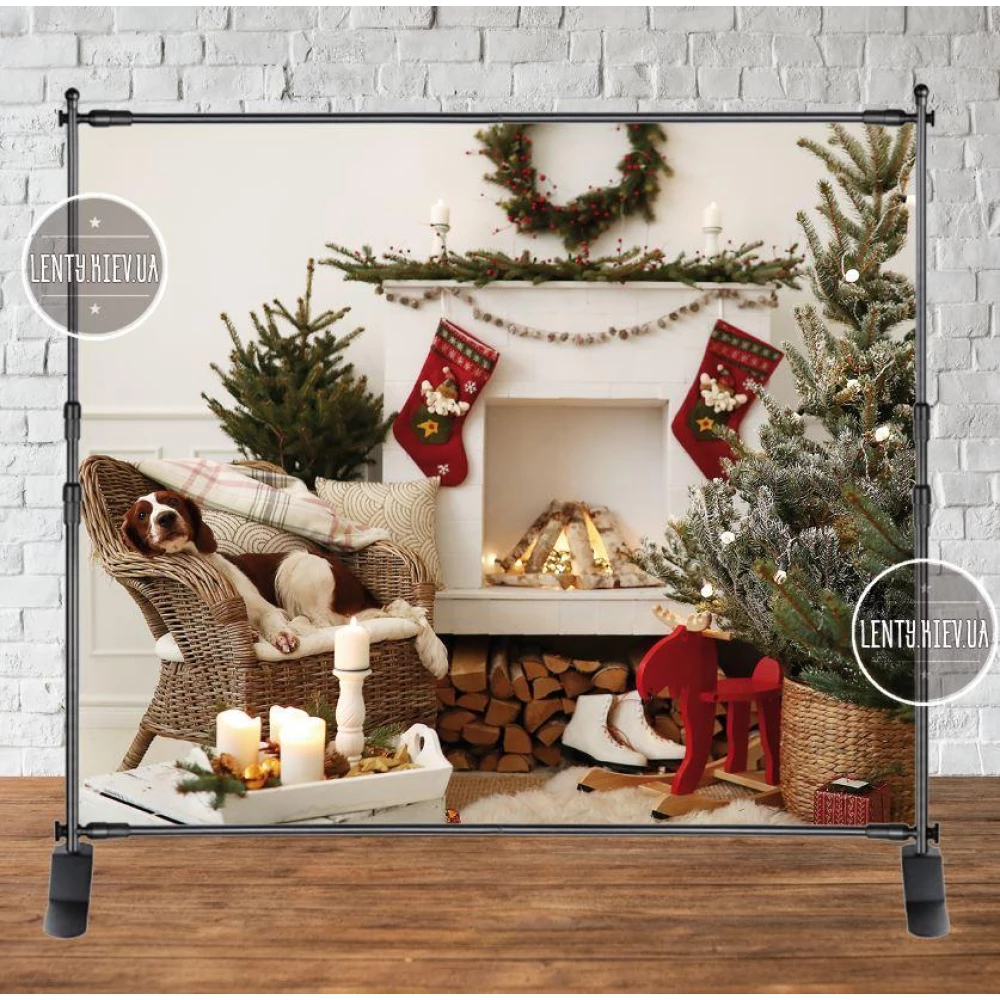 Баннер Новогодний 3х2,5м “Камин Санты с собакой“