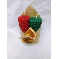 Набор свечей из вощины с декором ( ручная работа) 2 шт (высота 8 см диаметр 3 см) Зеленый красный