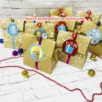 Набор крафт-пакетов для Адвент календаря с заданиями для Нового года на 7 дней - Украинский