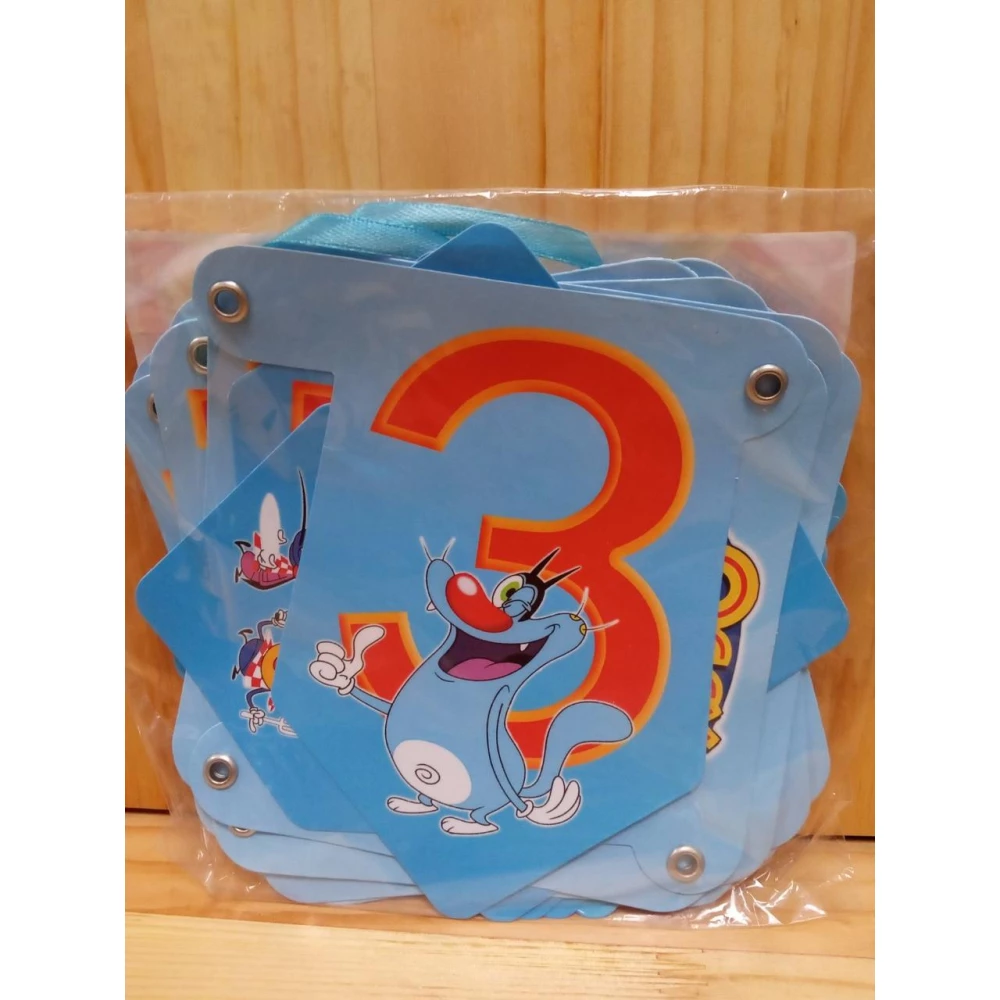 Гирлянда бумажная Огги и Кукарачи «З Днем Народження» (Редкие модели/малотиражные) - аксессуары для детского праздника