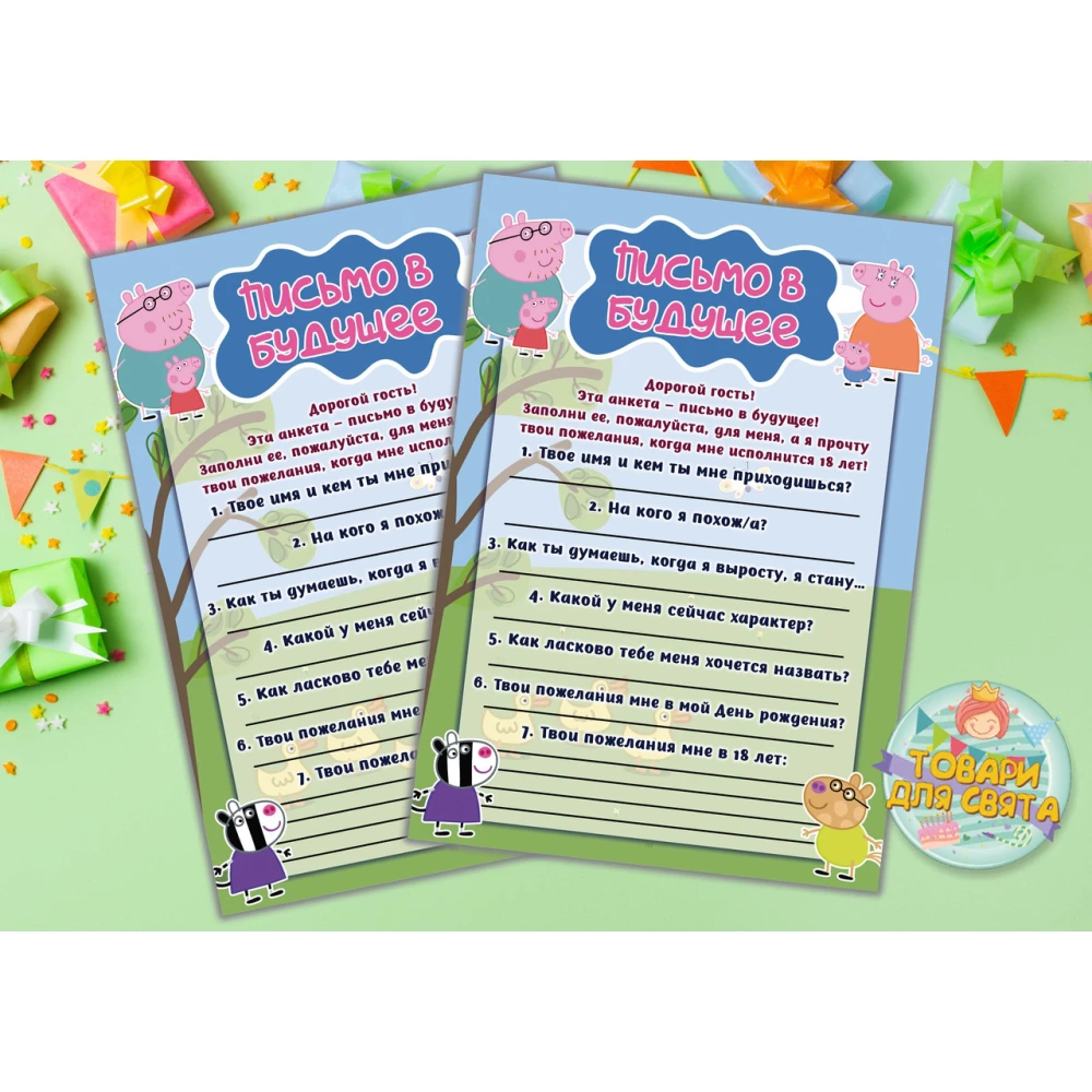 Письмо в будущее “Свинка Пеппа“ А5 (21х14,5 см) - Русский