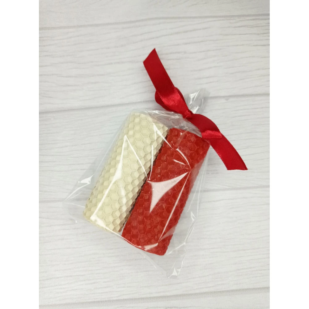 Набор свечей из вощины ( ручная работа) 2 шт (высота 8 см диаметр 3 см) Молочный и красный