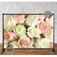 Баннер 3х2м “Большие белые и чайные розы“ - Фотозона (виниловый) на день рождения