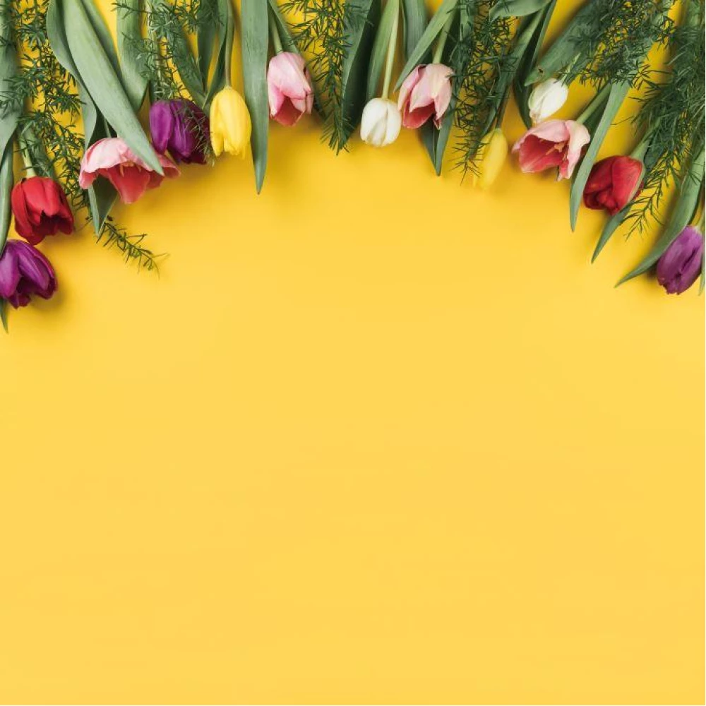 Фото-фон виниловый 100х100см “Желтый фон, яркие тюльпаны“, фон для предметной съемки ПВХ (баннерная ткань)