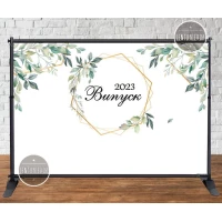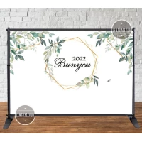 Баннер 3х2м “Випуск“ (Белый фон, зелень, рамка) - Фотозона (виниловый) (Без каркаса) -
