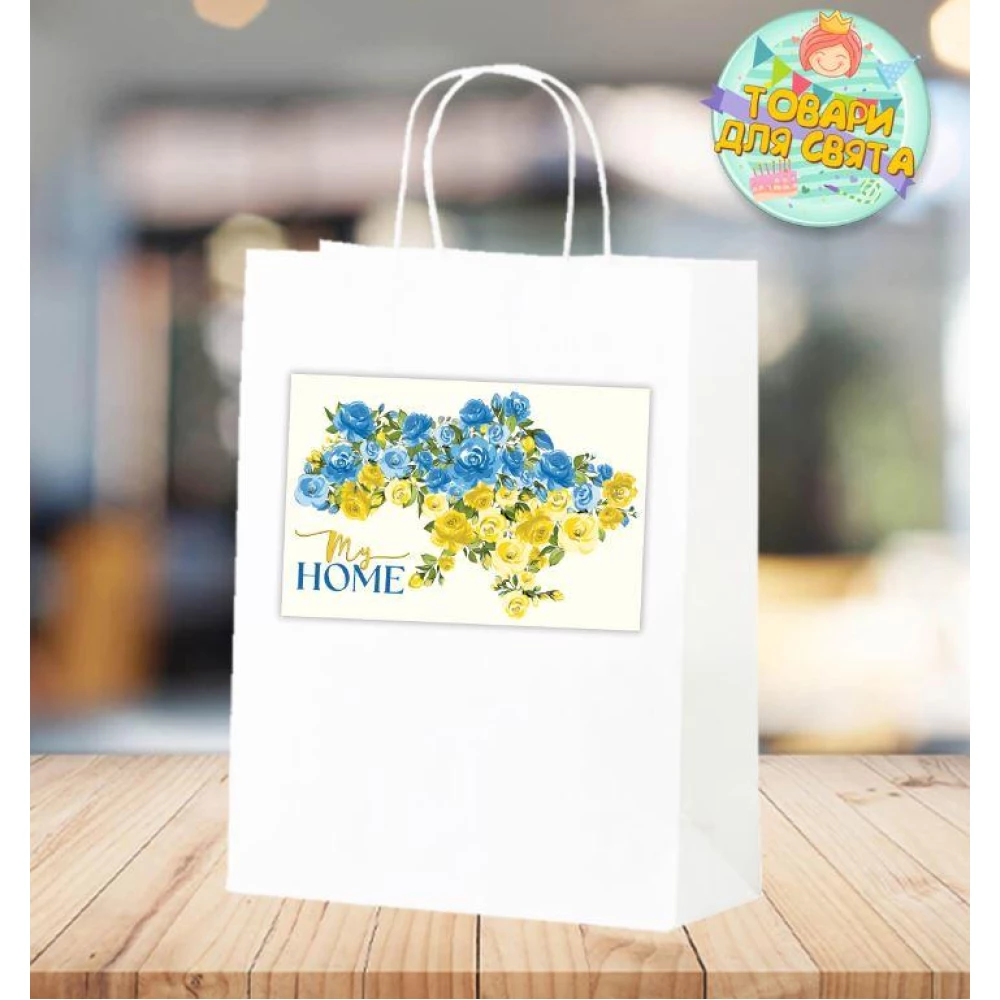Пакет патриотический “My home. Силуэт Украины. Желто-голубые розы“ 28х19х11 см