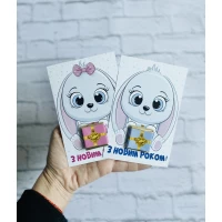 Новогодняя открытка с мини шоколадкой "Зайка девочка" подарок на детский праздник (поштучно)