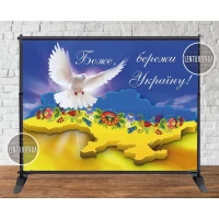 Патриотический баннер “Боже, бережи Україну!“, голубь мира. 2х1,5м Фотозона (без каркаса)