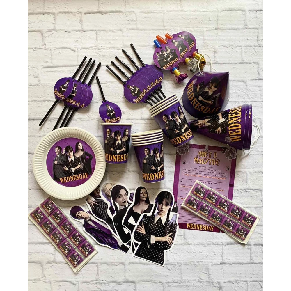 Наклейка “Венсдей / Венздей / Уенсдей Аддамс“ + лого с розой 13х14см на шар 18“ (поштучно, без шара)