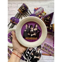 Стаканчики “Венсдей / Венздей / Уенсдей Аддамс“ черные с круглой наклейкой (поштучно) одноразовые