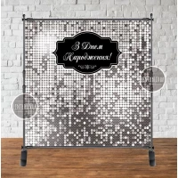 Баннер “Серебряная пайетка (имитация)“ 2х2м, - Фотозона (виниловый ) на день рождения (без каркаса) -