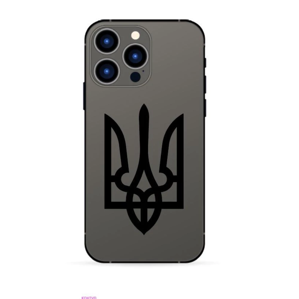 Патриотическая наклейка на телефон / чехол “Герб Украины (тризубец)“ 10х5 см - Черный
