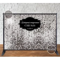 Баннер на выпускной 3х2м “Серебряная пайетка (иммитация), Випуск 2024 (или без года)“ - Фотозона (виниловый) (Без каркаса) -