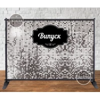 Баннер на выпускной 3х2м “Випуск“ Серебряная пайетка (иммитация)“ - Фотозона (виниловый) (Без каркаса)