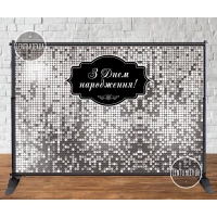 Баннер “Серебряная пайетка (имитация)“ 3х2м, - Фотозона (виниловый ) на день рождения (без каркаса) -