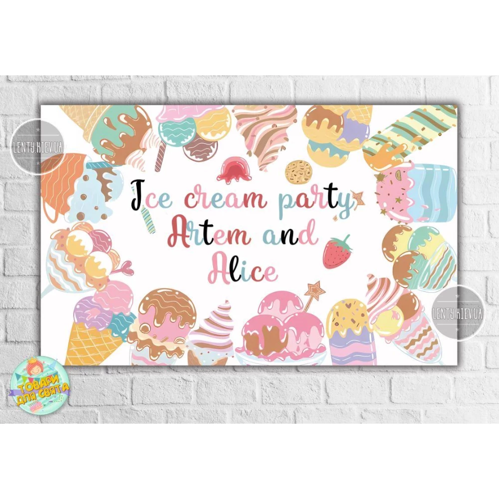 Плакат “Мороженое Ice cream party“ - 120х75 см для Кенди - бара Индивидуальна надпись (с именем)