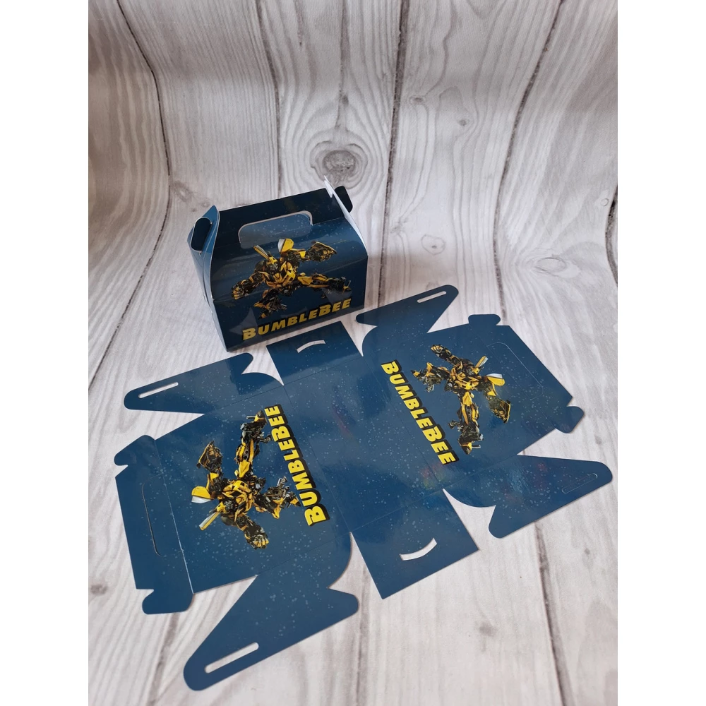 Коробочка “Бамблби Трансформеры“ порционная для тортика/подарков 13х15х8,5