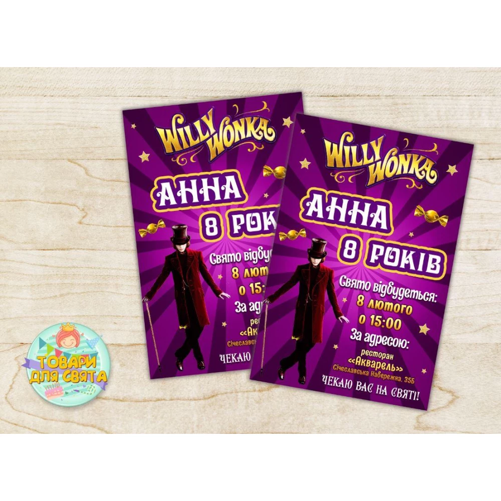 Именные пригласительные “Вилли Вонка. Чарли и шоколадная фабрика“ тематические (полиграфия) -