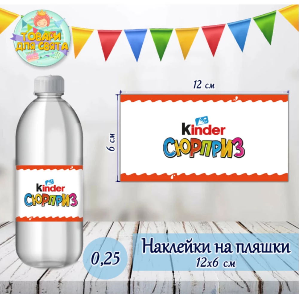 Наклейка на бутылку “Киндер Сюрприз“ (12*6см)