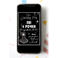 Электронное приглашение "Венсдей / Венздей / Уенсдей Аддамс" в чорно-серебряном цвете