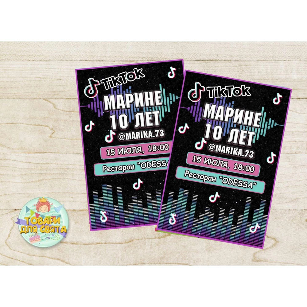 Именные пригласительные з мини шоколадкой на праздник в стиле "Тик Ток".