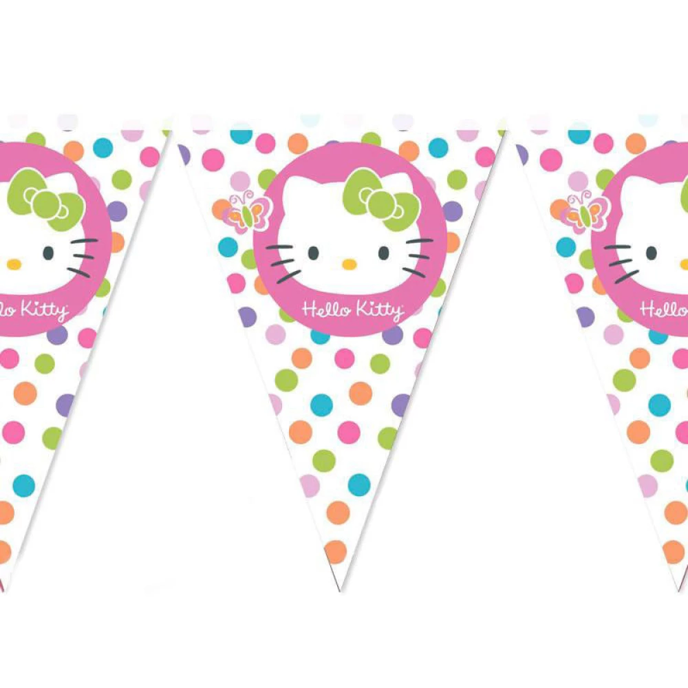 Флажки-гирлянды 2м. (карнавальная гирлянда из флажков) вымпелы - Белый, Китти (горох)