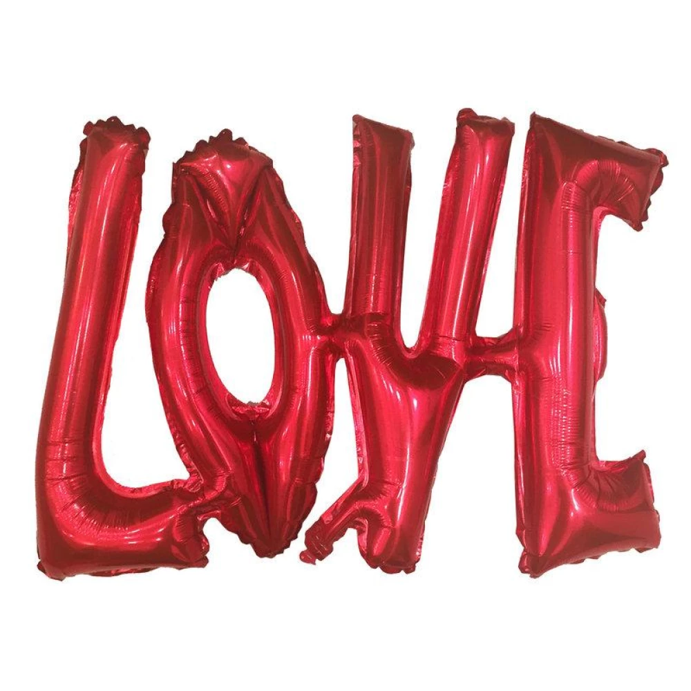 Фольгированная надпись “LOVE“ это объединенная группа шаров красного цвета, формирующих слово “LOVE“