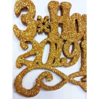 Большой топпер в торт “З Новим 2019 Роком“ (свинка)- Золото блестки