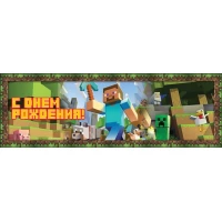 Плакат Майнкрафт Стив / Minecraft 30х90 см для Кенди - бара (Тематический)- С Днем рождения - Русский