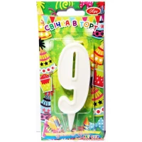 Свеча цифра в торт белая- 9